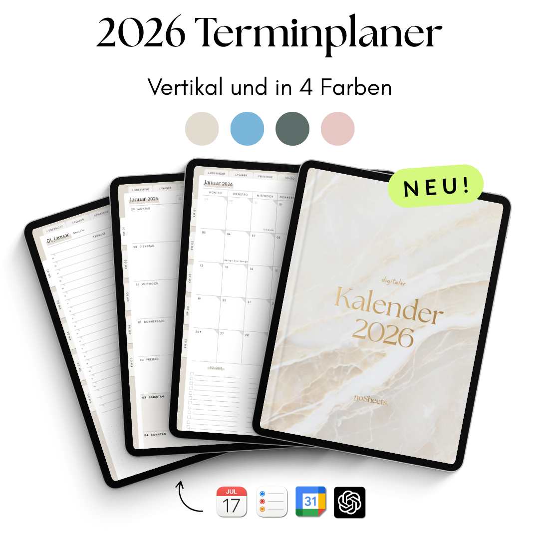 Mit nosheets. möchten wir genau das weitergeben. Unser Fokus bei noSheets. liegt darauf, digitales Planen so einfach und zugänglich wie möglich zu machen. Wir entwickeln Tools, die intuitiv nutzbar sind und sich flexibel an dein Leben anpassen. Ganz ohne komplizierte Systeme, dafür mit viel Liebe zum Detail.