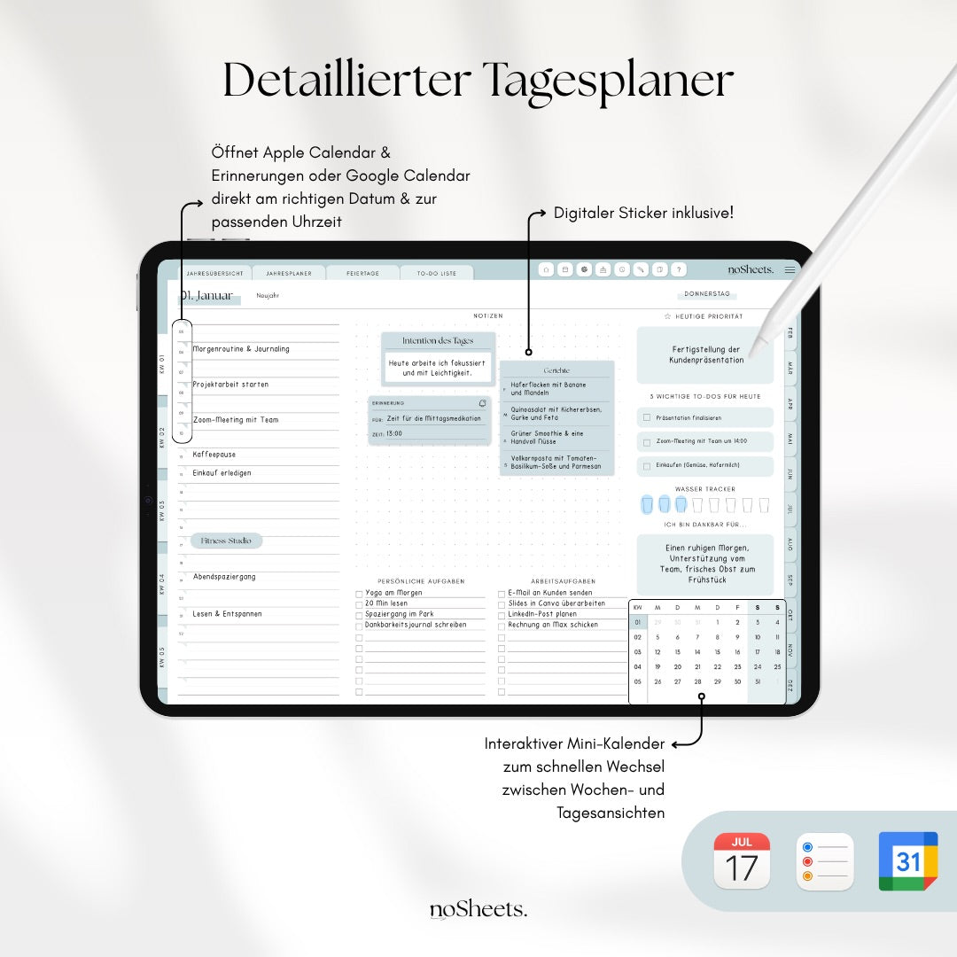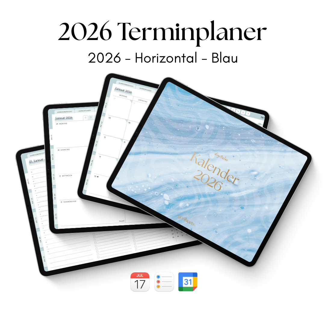 Der Kalender für alle, die ihren Alltag gerne digital organisieren: Mit dem noSheets Planer 2026 behältst du Termine und Aufgaben mühelos im Blick – auf Tablet oder Laptop.