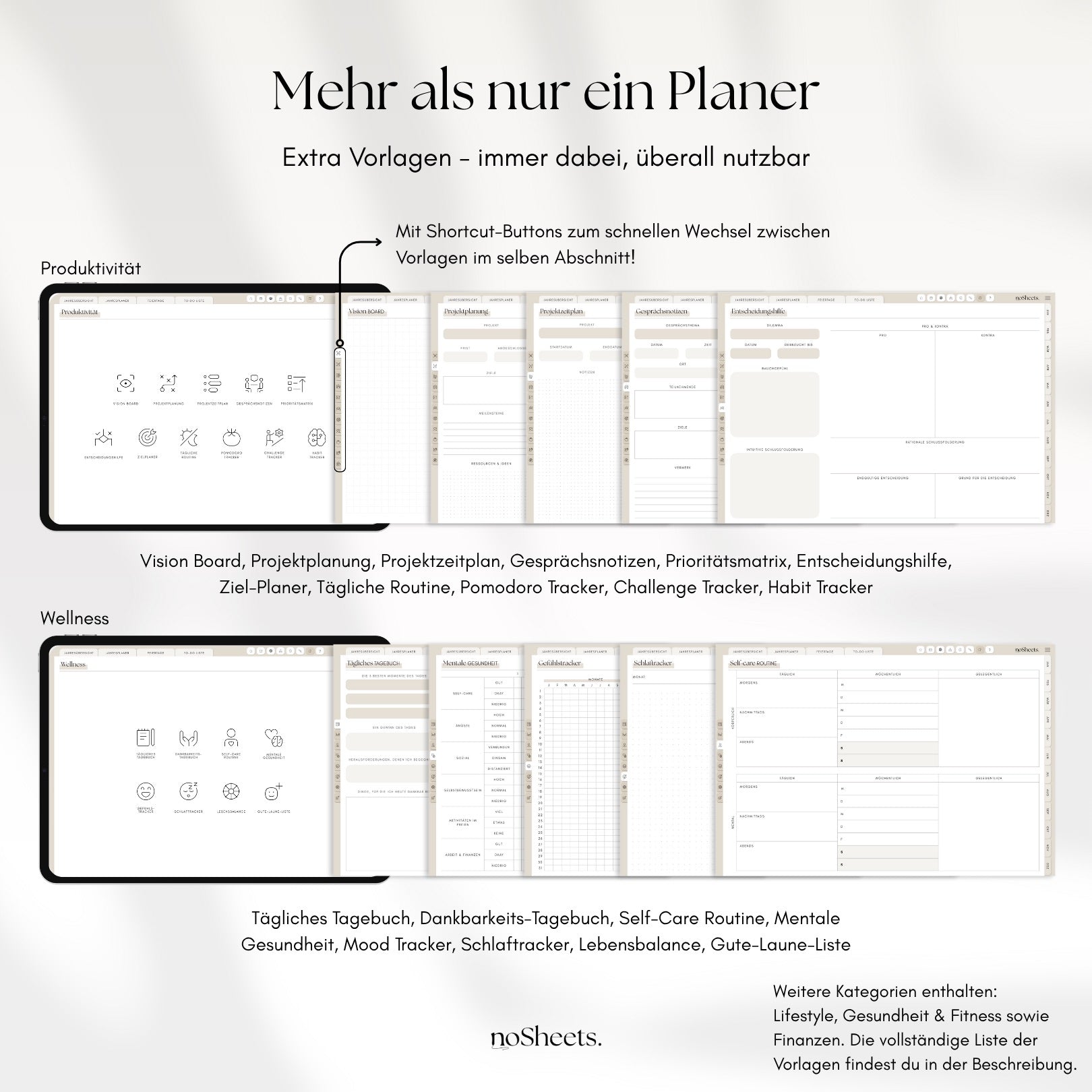 ✓ Extra Vorlagenseiten mit über 20 Themen