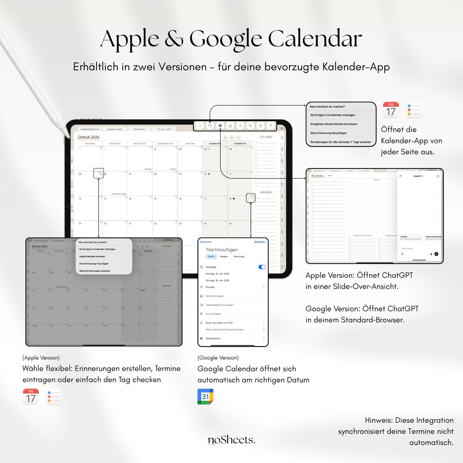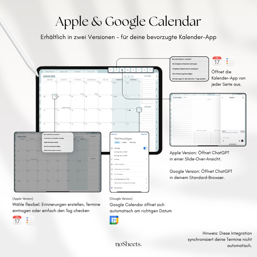 Digitaler Terminplaner 2026 von noSheets - smart planen, flexibel bleiben.