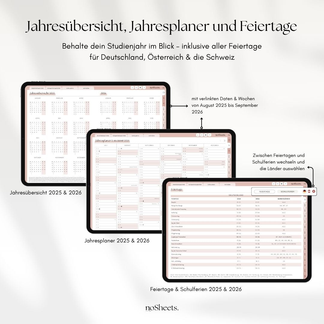 Digitaler Studienplaner 25/26 von NoSheets – smart planen, flexibel bleiben.